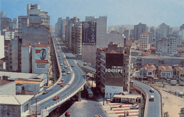 Elca has been living on the third floor since 1959. First they widened the street and planted trees to make a boulevard, she recalls. Then in the late 60s Brazil’s military dictatorship decided São Paulo needed an elevated highway to help link the east and west of the rapidly growing city."