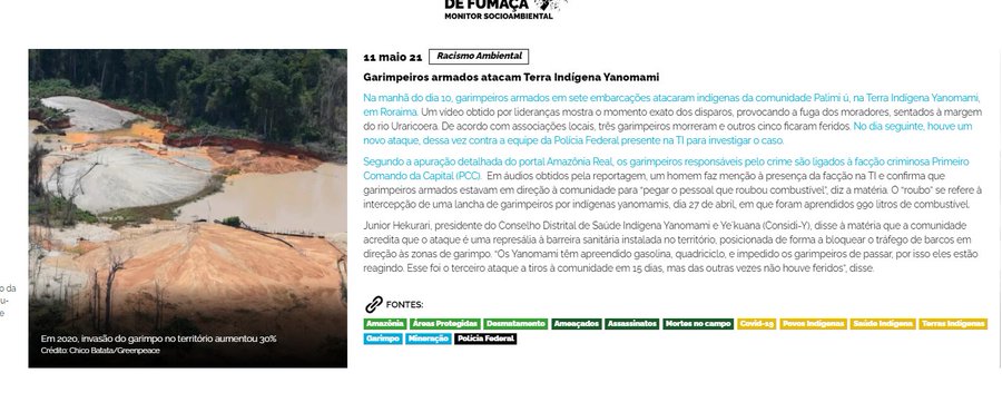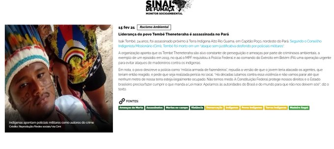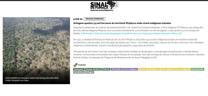 Registramos que o mês de novembro de 21 foi duro para defensores do meio ambiente e indígenas. @Alkorap1