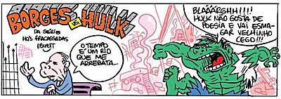 Clique AQUI para conhecer o humor insólito do Benett, como nesses superheróis que criou para uma série de tirinhas fracassadas: